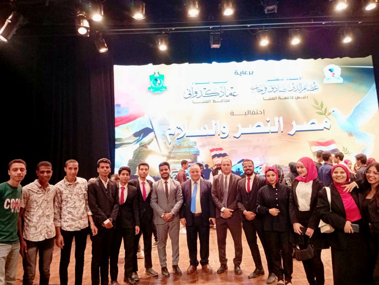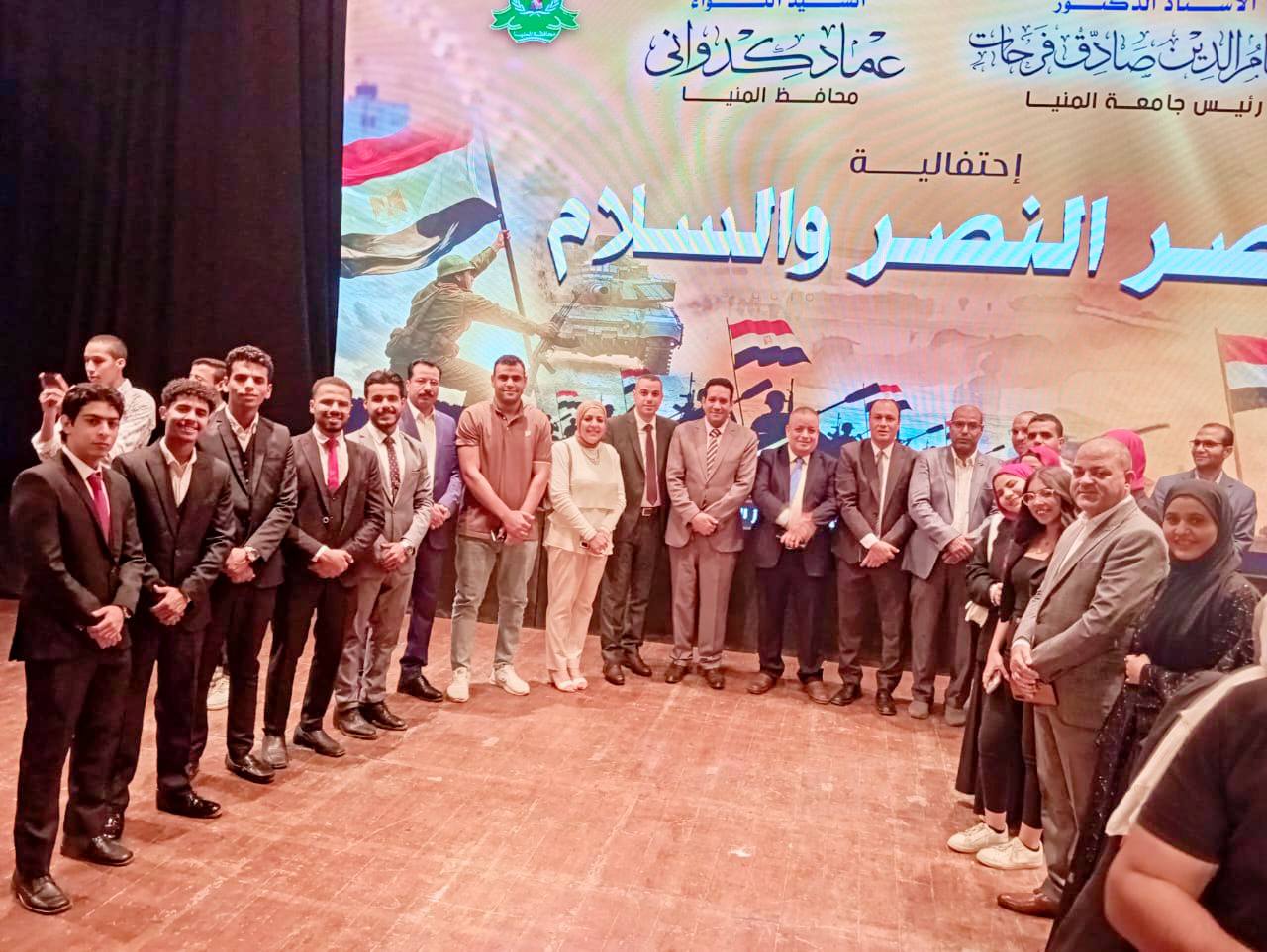 آداب المنيا تشارك بالحضور فى احتفالية مصر النصر والسلام بمناسبة ذكرى انتصارات اكتوبر المجيدة.