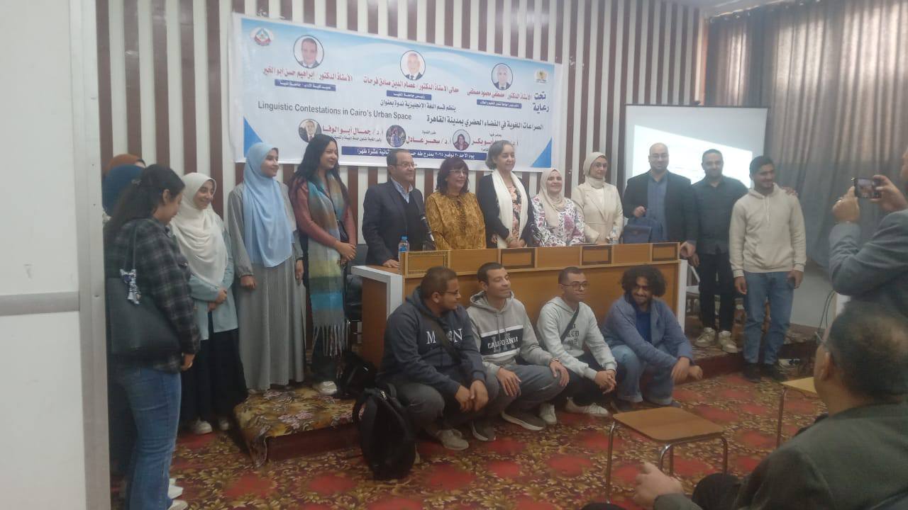 وفي إطار الأنشطة الأكاديمية والثقافية المتواصلة لقسم اللغة الإنجليزية نظم القسم ندوة بعنوان “الصراعات اللغوية في الفضاء الحضري بمدينة القاهرة" حاضرت فيها الأستاذة الدكتورة راندا أبو بكر أستاذ الأدب الإنجليزي والمقارن بكلية الآداب جامعة القاهرة، واستعرضت سيادتها أنماط استخدام اللغة في الفضاء الحضري القاهري، وما يرتبط بها من سعي إلى اكتساب رأس المال الرمزي وانتزاع حق الظهور والهيمنة وامتلاك الفضاءات الحضرية ، كما شهدت الفعالية حضورًا لافتًا من أعضاء هيئة التدريس بقسم اللغة الإنجليزية، إلى جانب باحثي الدراسات العليا والطلاب، الذين أثروا النقاش بتفاعلهم و مداخلاتهم.