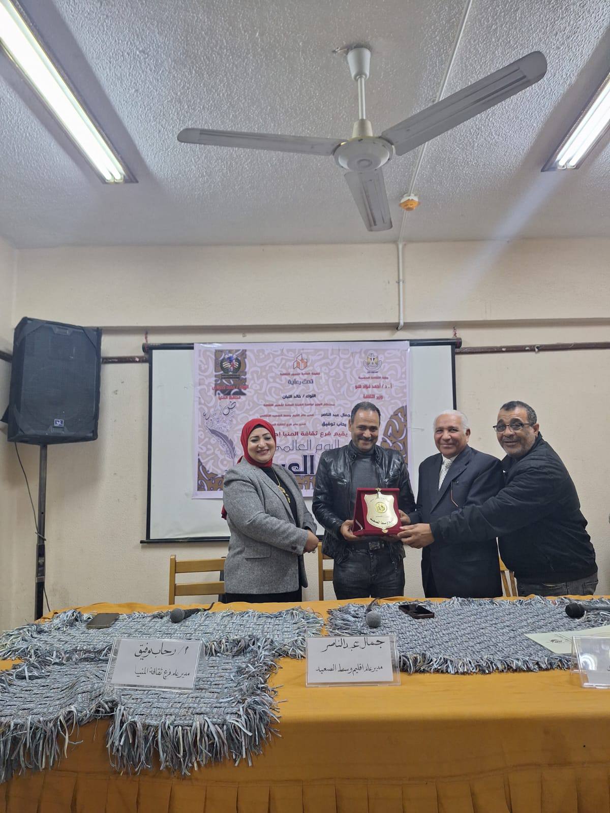 في احتفالية أدبية وفنية قام اقليم وسط الصعيد الثقافي بتكريم الأستاذ الدكتور محمد نجيب التلاوي الأستاذ بقسم اللغة العربية وعميد الكلية الأسبق اعترافا بجهوده الثقافية والنقدية والتعليمية في الاقليم وفي مصر ولتميزه كقامة علمية على مستوي دول وجامعاتنا العربية ، وفي سياق الاحتفالية الثقافية والفنية التي قدمها اقليم وسط الصعيد الثقافي بالتعاون مع مديرية الثقافة بالمنيا يوم الخميس الماضي الموافق ٢٥ / ١٢ / ٢٠٢٥م قام الأستاذ الدكتور محمد نجيب التلاوي بافتتاح معرض الخط العربي بقصر ثقافة المنيا وقد ألقى سيادته محاضرة عامة عن أهمية الفصحى ومواطن جمالياتها ، تكريم وسط الصعيد الثقافي ، وافتتاحه لمعرض الخط العربي بقصر ثقافة المنيا . ومحاضرة عامة بمناسبة اليوم العالمي للغة العربية بقصر ثقافة المنيا ، وذلك بحضور الدكتور جمال عبدالناصر رئس اقليم وسط الصعيد الثقافي والاستاذة رحاب توفيق مديرة الثقافة بمحافظة المنيا والشاعر أسامة أبوالنجا رئس النادي الأدبي المركزي بالمنيا مع مجموعة من الأدباء من المنيا وأسيوط وسوهاج.