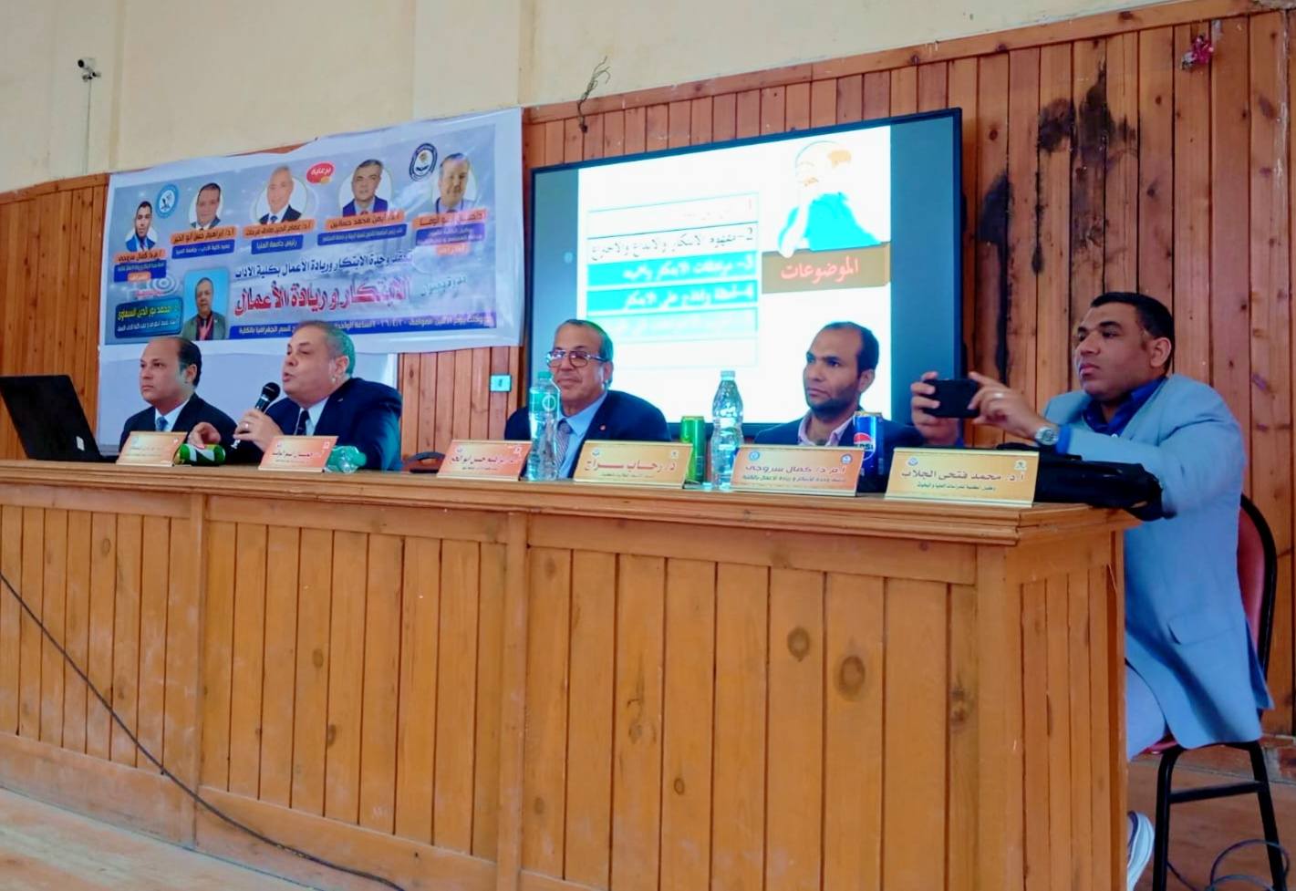 برعاية معالي الوزير الأستاذ الدكتور عصام الدين صادق فرحات رئيس الجامعة ومعالي الأستاذ الدكتور أيمن محمد حسنين نائب رئيس الجامعة لشؤون خدمة المجتمع وتنمية البيئة وسعادة الأستاذ الدكتور إبراهيم حسن أبوالخير عميد كلية الآداب باشراف الأستاذ الدكتور جمال أبوالوفا وكيل الكلية لشؤون البيئة وخدمة المجتمع والدكتور كمال سروجي درويش منسق وحدة الابتكار وريادة الأعمال بالكلية والدكتور طارق زغلول مدير إدارة رعاية الطلاب بالكلية.